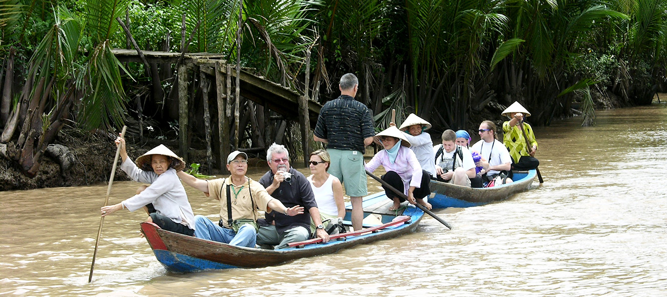 Đồng bằng sông Cửu Long là một trong những tour du lịch đẹp nhất ở Việt Nam. Con sông chảy từ núi Tây Tạng và chảy qua Lào, Myanmar, Thái Lan, Campuchia và Việt Nam nên chuyến tham quan đồng bằng sông Cửu Long sẽ cho bạn những ý tưởng hoàn hảo về cách sống giản dị của người dân Đông Nam Á. Mê Kông dài khoảng 4500 km. Chuyến tham quan đồng bằng sông Cửu Long của chúng tôi chỉ có thể bao gồm một khoảng cách chính dọc theo con sông lớn nhất này nhưng bạn có thể thấy văn hóa và các hoạt động đời sống địa phương trên sông.
